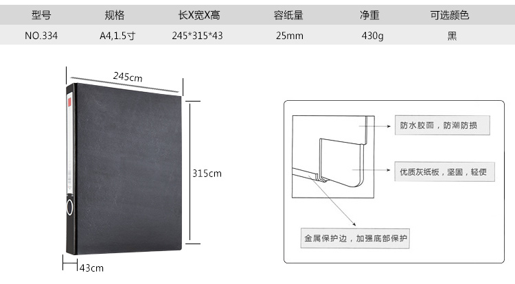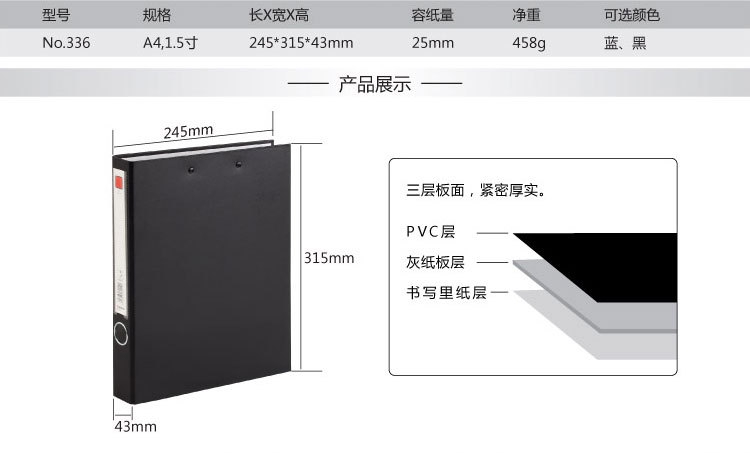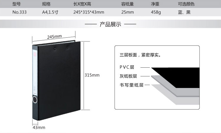 | 齐心NO.333,NO.334,NO.336 蓝黑办公必备纸板夹 A4 | |||