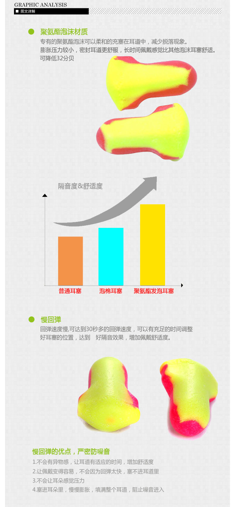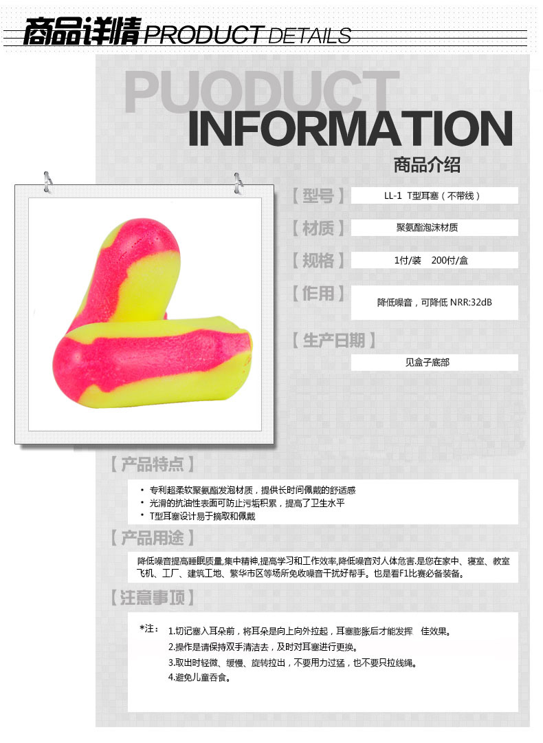 鲜明的耳塞颜色,使佩戴的耳塞更易察觉,同时增加佩戴乐趣 柔软的耳塞能自动调整,使耳塞更加贴合耳道,佩戴非常舒适 T型耳塞设计,使佩戴和摘取更加简便 光滑防油污无孔发泡耳塞,防止污垢累积 |