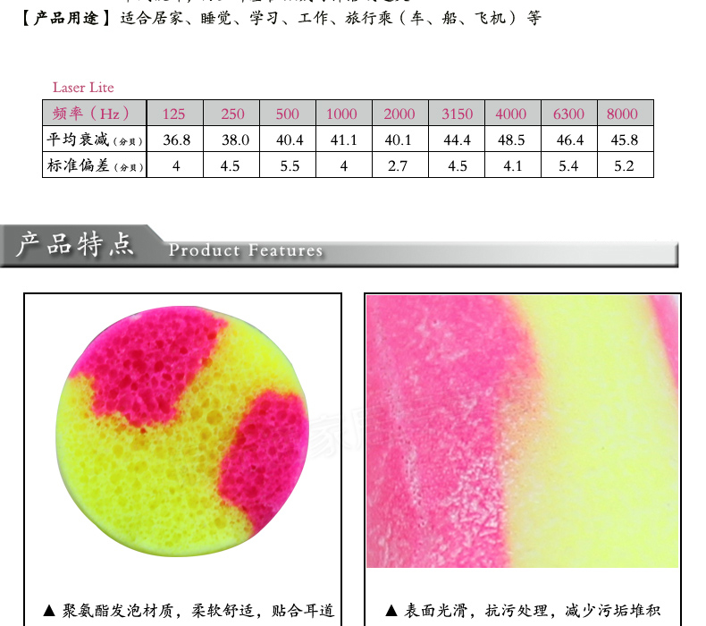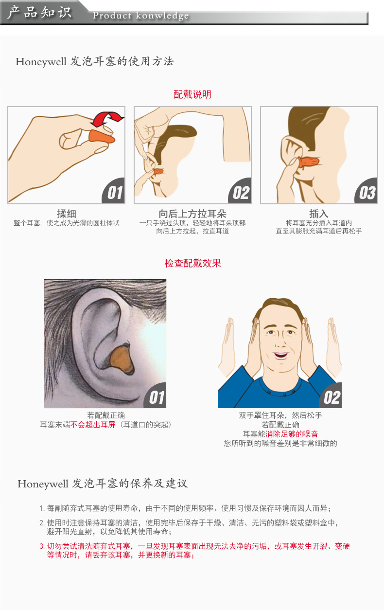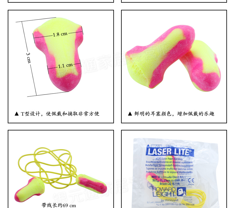 鲜明的耳塞颜色,使佩戴的耳塞更易察觉,同时增加佩戴乐趣 柔软的耳塞能自动调整,使耳塞更加贴合耳道,佩戴非常舒适 T型耳塞设计,使佩戴和摘取更加简便 光滑防油污无孔发泡耳塞,防止污垢累积 带线(PVC材质),不易丢失 |