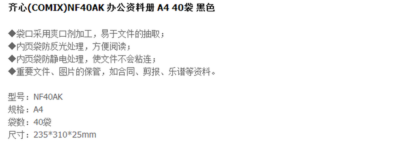 | 齐心NF40AK,NF60AK 办公必备 资料册 A4 40页/60页 |