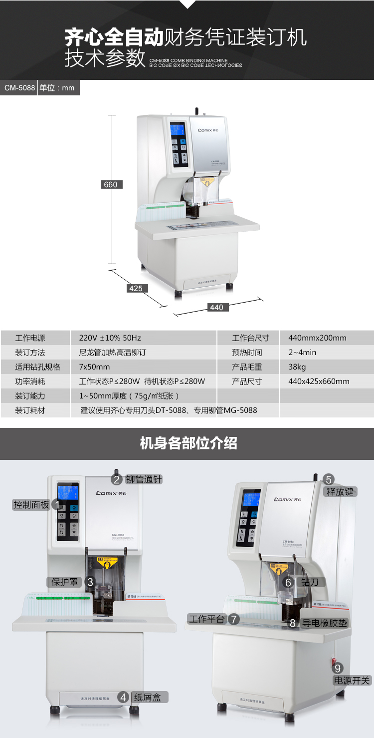 | 齐心CM-5088 全自动财务凭证装订机 白色 |