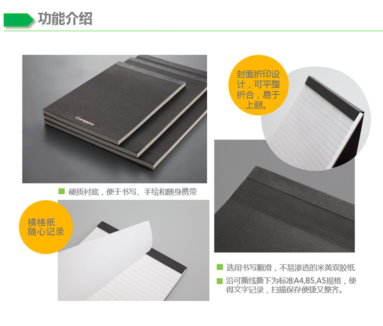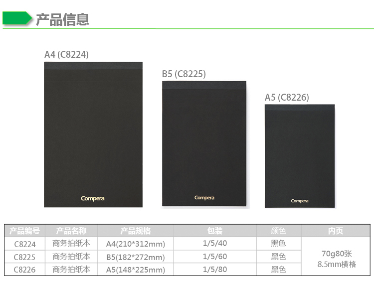 | 齐心C8224,C8225,C8226 Compera 商务拍纸本(横格)黑色 |