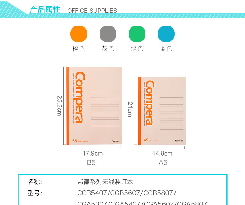 | 齐心CGA5307,CGA/B5407 ,CGA/B5507, CGA/B5607,CGA/B5807 无线装订本 | |||