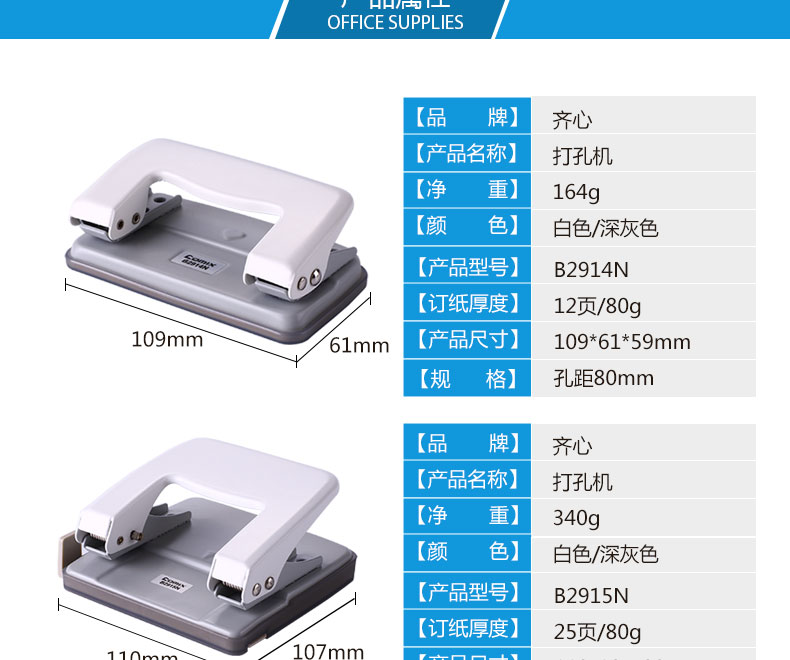 | 齐心B2914N ,B2915N,B2917N 耐用打孔机 |