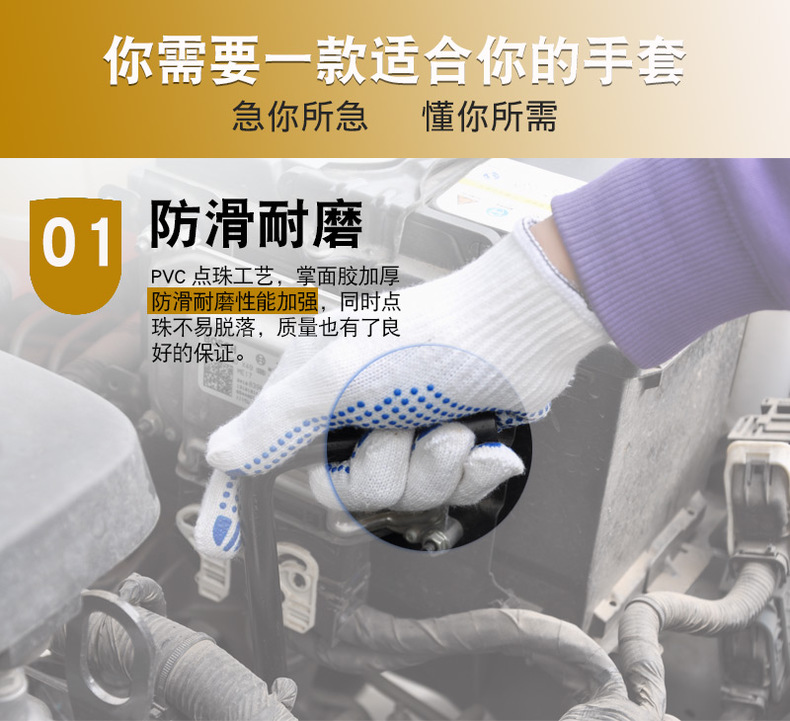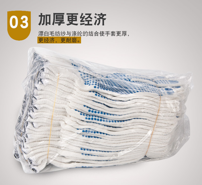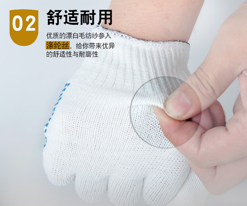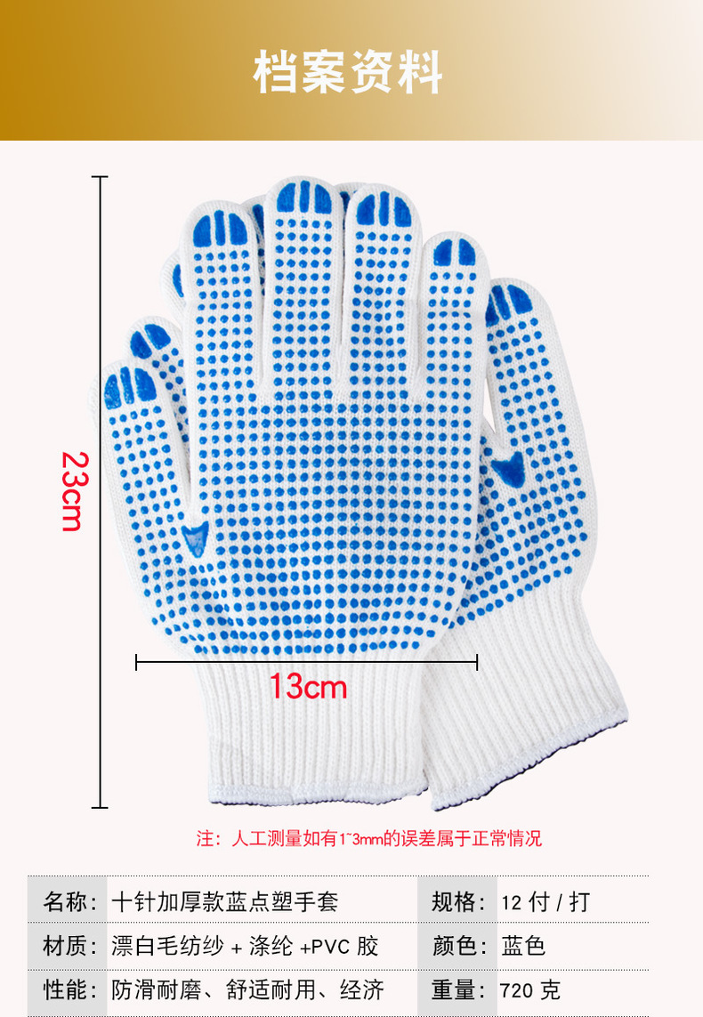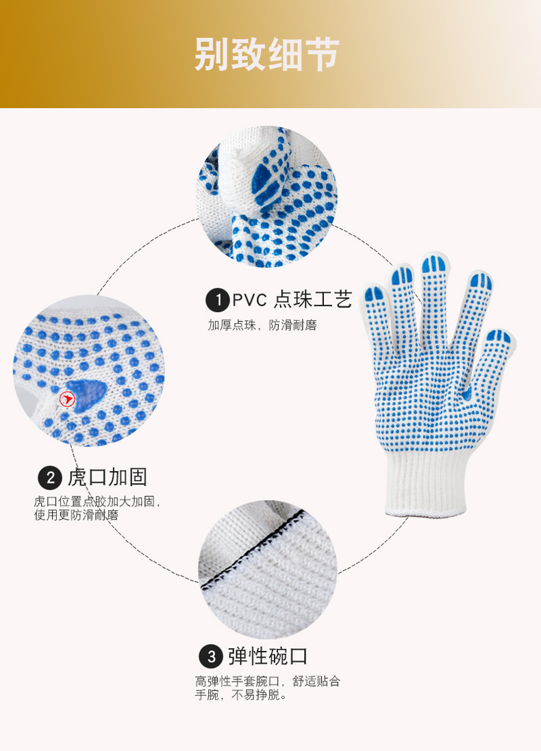 1、PVC点塑,掌面胶加厚,防滑耐磨性能加强