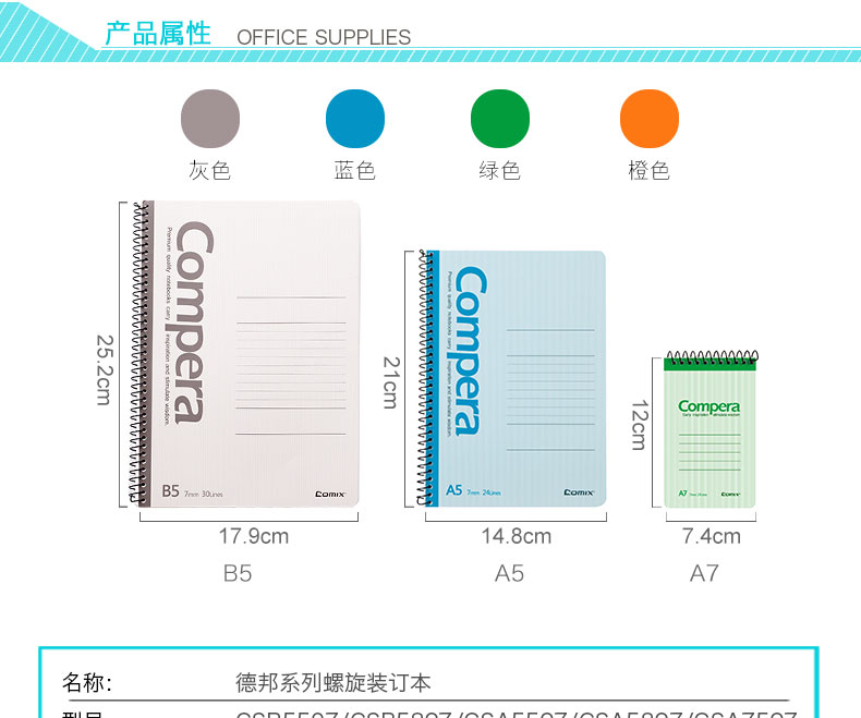 | 齐心CSA5507,CSA/B5807,CSA/B7507 Compera螺旋装订本 |