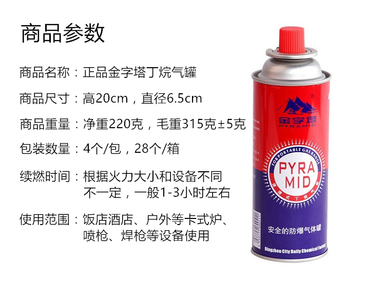 | 金字塔丁烷气防爆卡式炉用气 喷火枪烧烤炉用长气罐瓦斯液化气 |