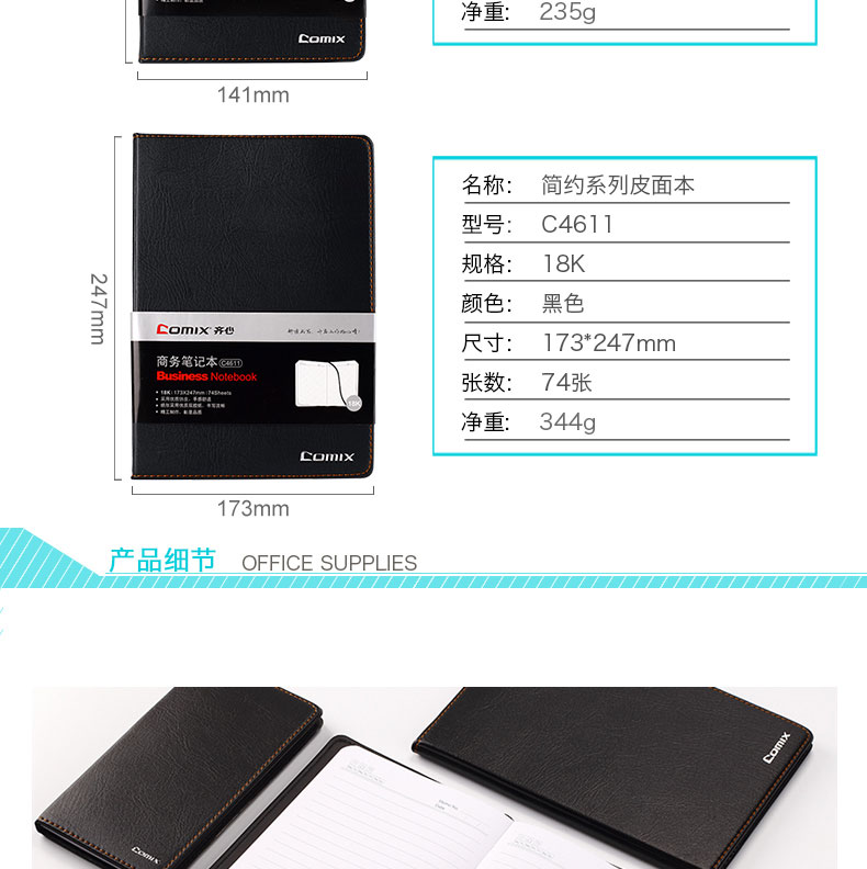 | 齐心C4611,C4612,C4613,C4614 简约系列皮面本 74张 |
