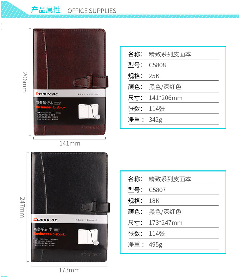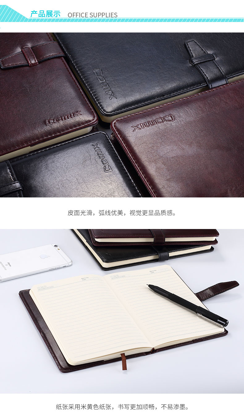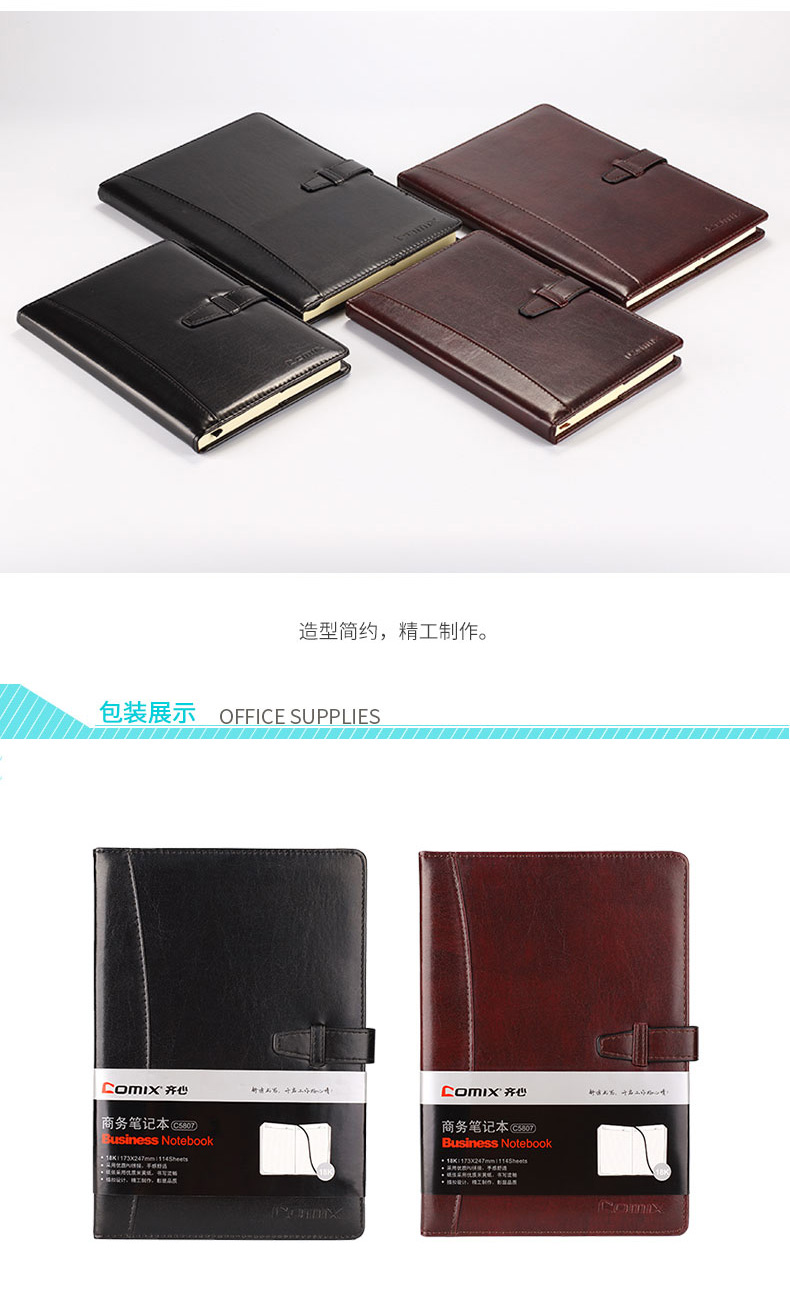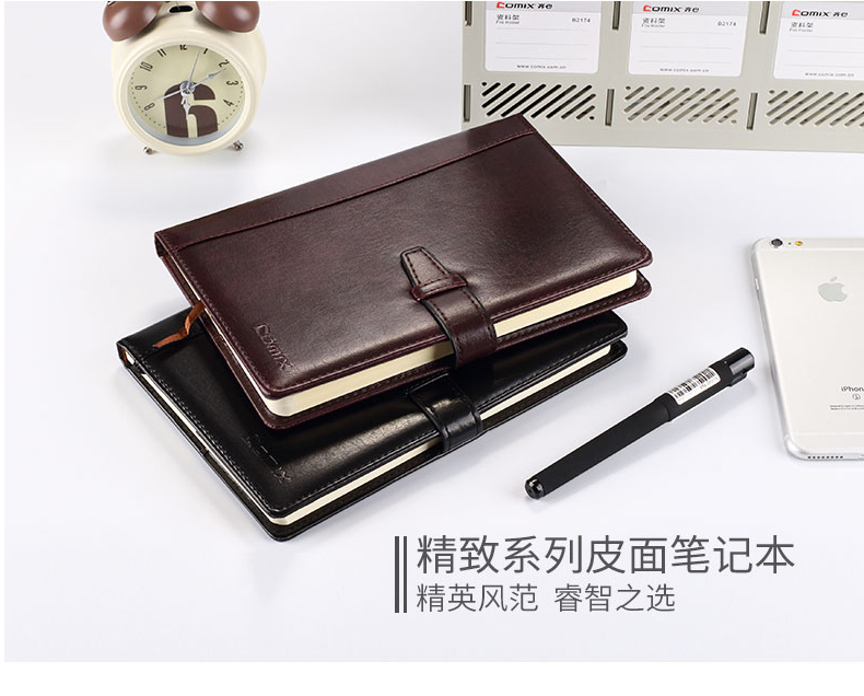 | 齐心C5807, C5808 皮面带扣商务笔记本办公记事本 |