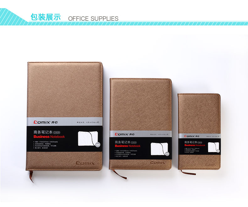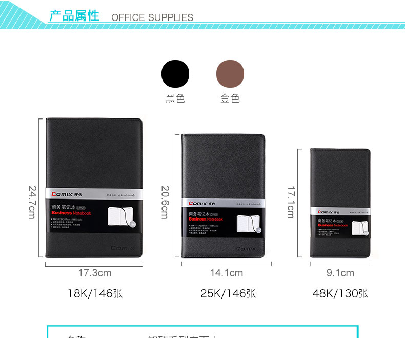 | 齐心C5828,C5829,C5830 商务黑色土豪金皮面笔记本 |