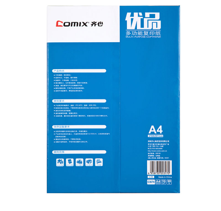 | 齐心C3674-5优品复印打印纸A470g办公用品双面打印单包500张 |
