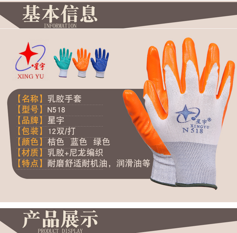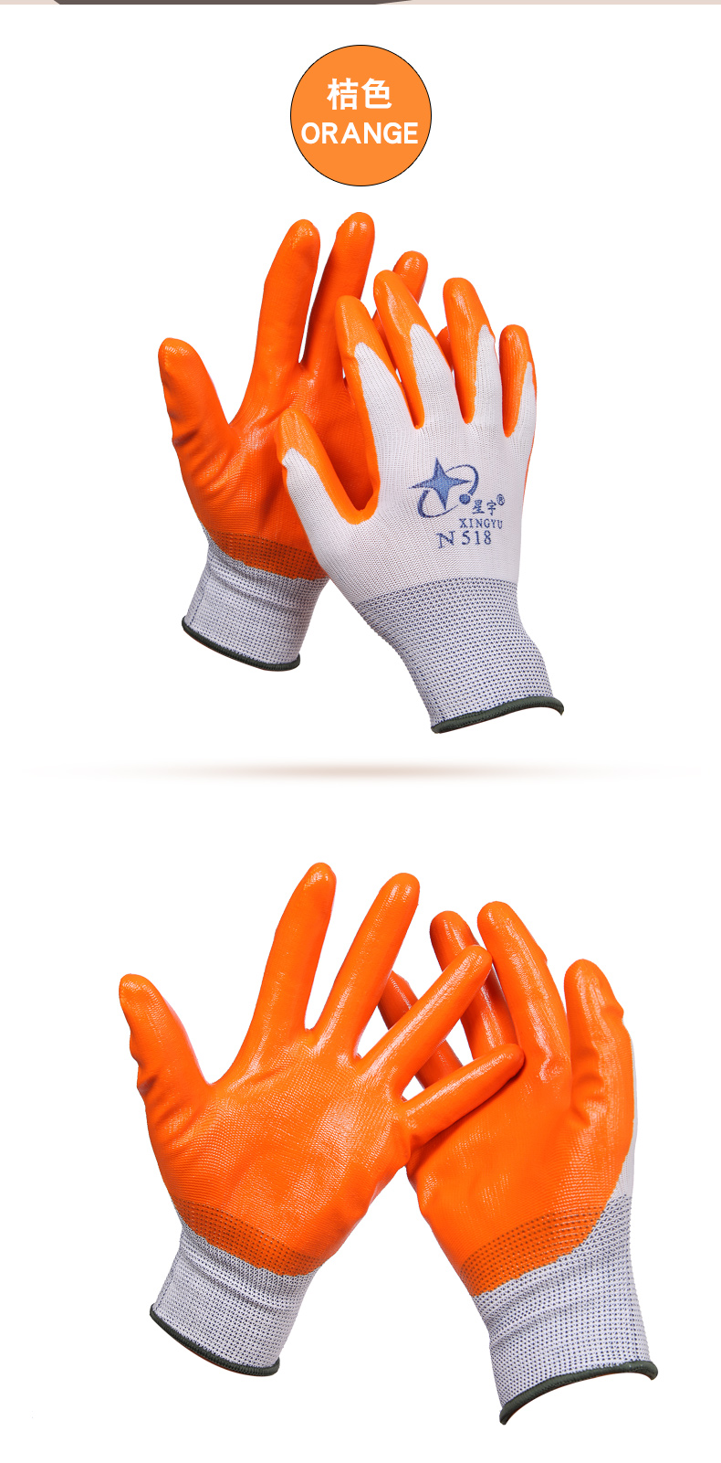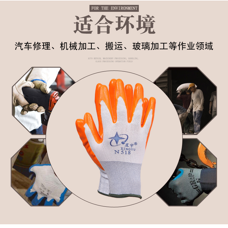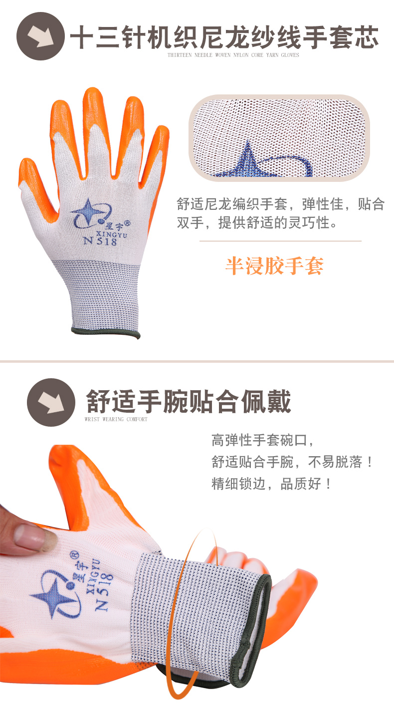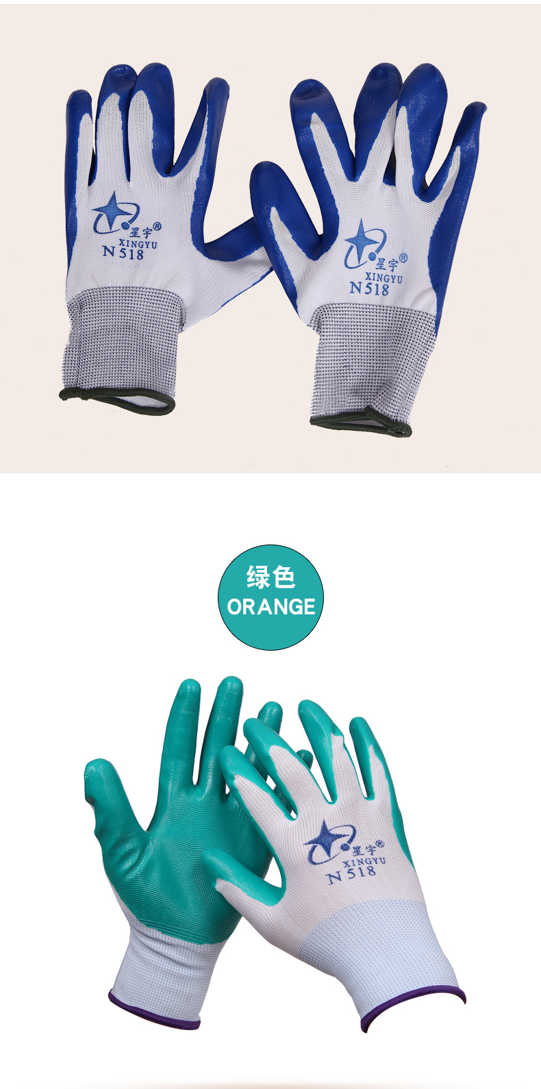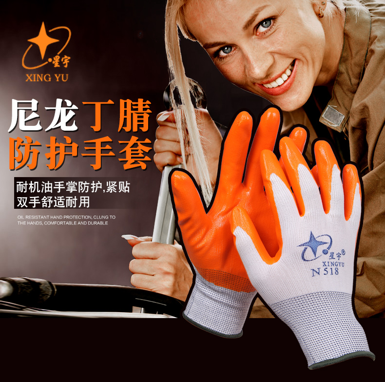 | 星宇N518尼龙丁晴纯胶手套浸胶防护手套防滑防割薄胶劳保耐磨防滑 |