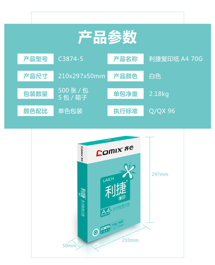 | 齐心C3874-5,C3874-8 利捷复印纸70克 A4 |