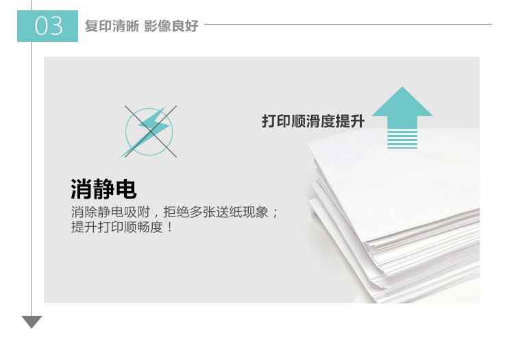 复印清晰防卡纸,影像良好,纸张挺度佳,复印过机顺畅