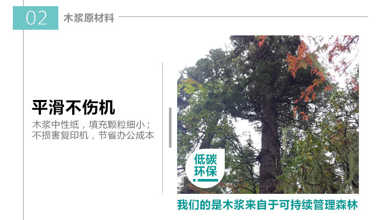 精选木浆原材料,纸浆均匀,填充颗粒细小,不损坏复印机
