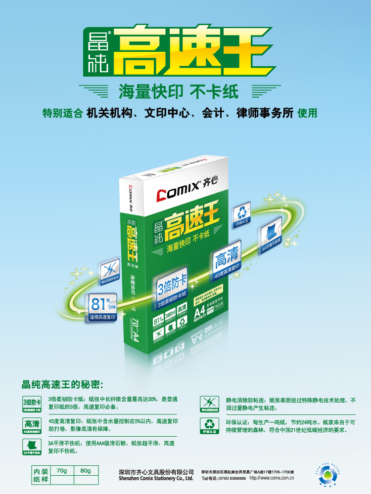 纸张挺度大,柔韧性强,切口规范平整,表面光滑,不易卡纸