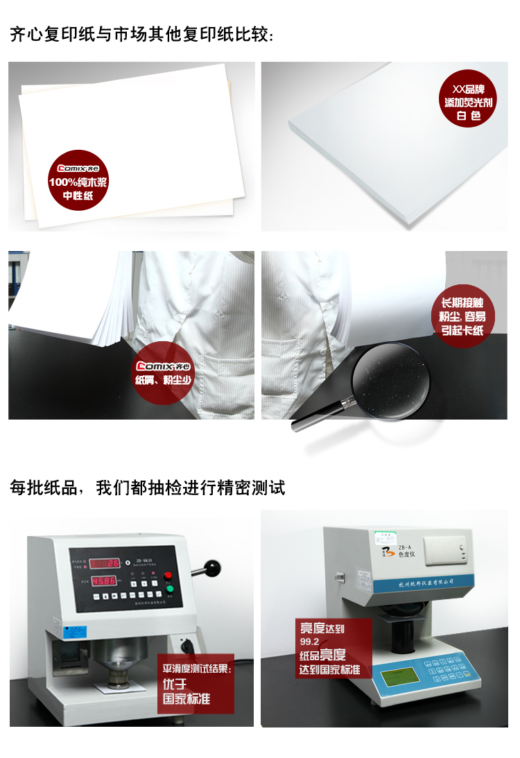 精选木浆原材料,纸浆均匀,填充颗粒细小,不损坏复印机