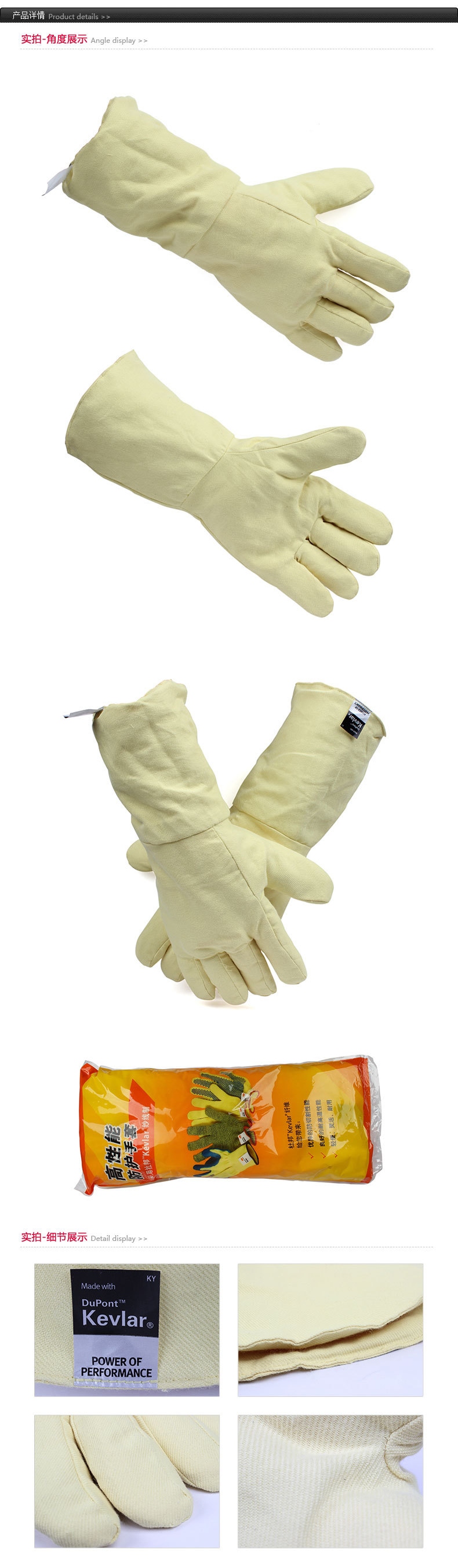 100% 杜邦TM KEVLAR 高性能纤维缝制,较好的耐高温,隔热性能,耐切割性能,为手部提供全方 位保护。加长的腕部设计为手腕, 小臂提供额外保护。 |