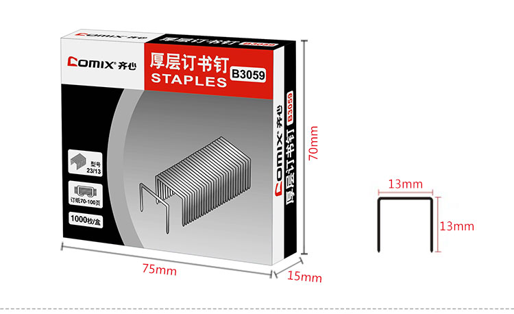 | 齐心 B3059 厚层订书钉(23/13)100页 1000枚/盒 |
