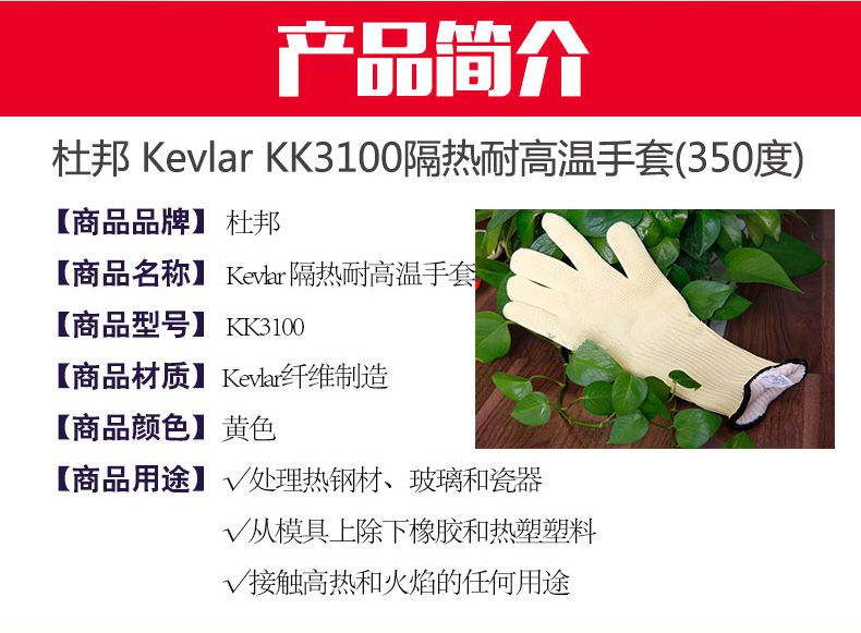 | 康思曼/杜邦 KK3100 Kevar® 纤维 隔热耐高温350℃五指分开手套 | |||