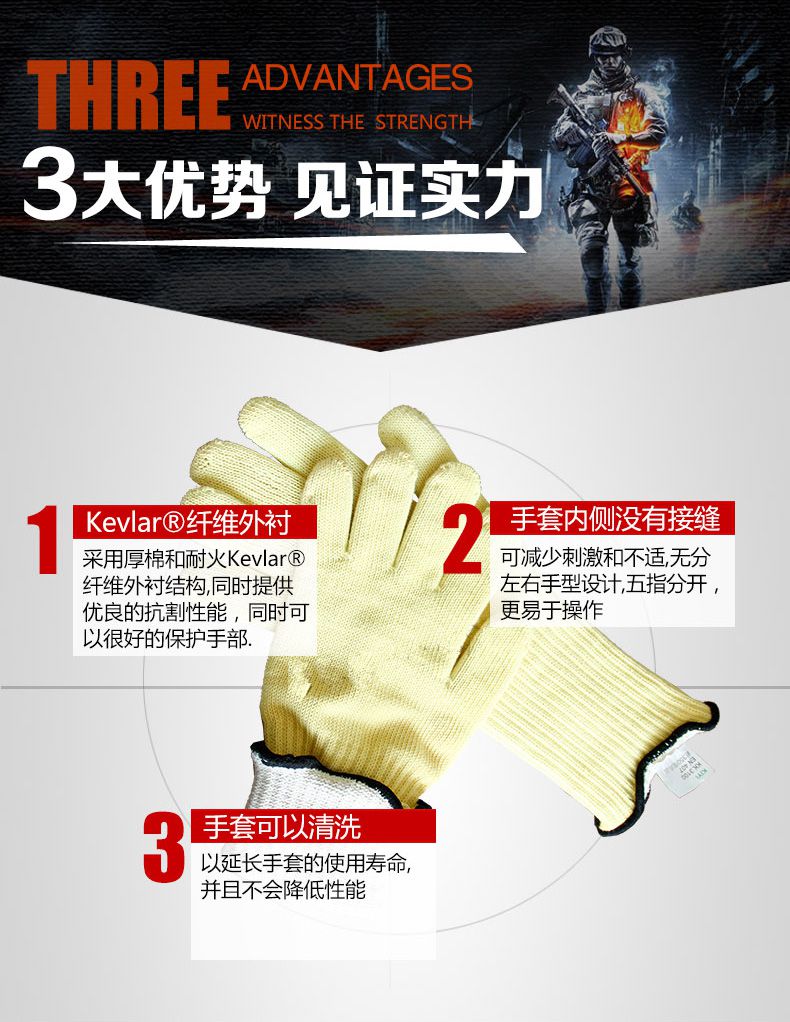材质:100%Kevlar线和棉。
