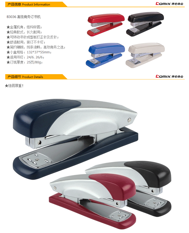 | 齐心B3036商务订书机12#(统一订书针)装订机订书器 |