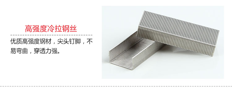 优质高强度钢材,尖头钉脚,不易弯曲,穿透力强