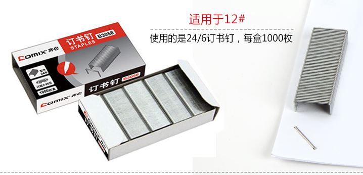 适用书钉24/6,一次钉纸可达25页,每盒1000枚