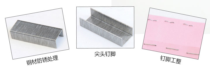 优质高强度钢材,尖头钉脚,不易弯曲,穿透力强