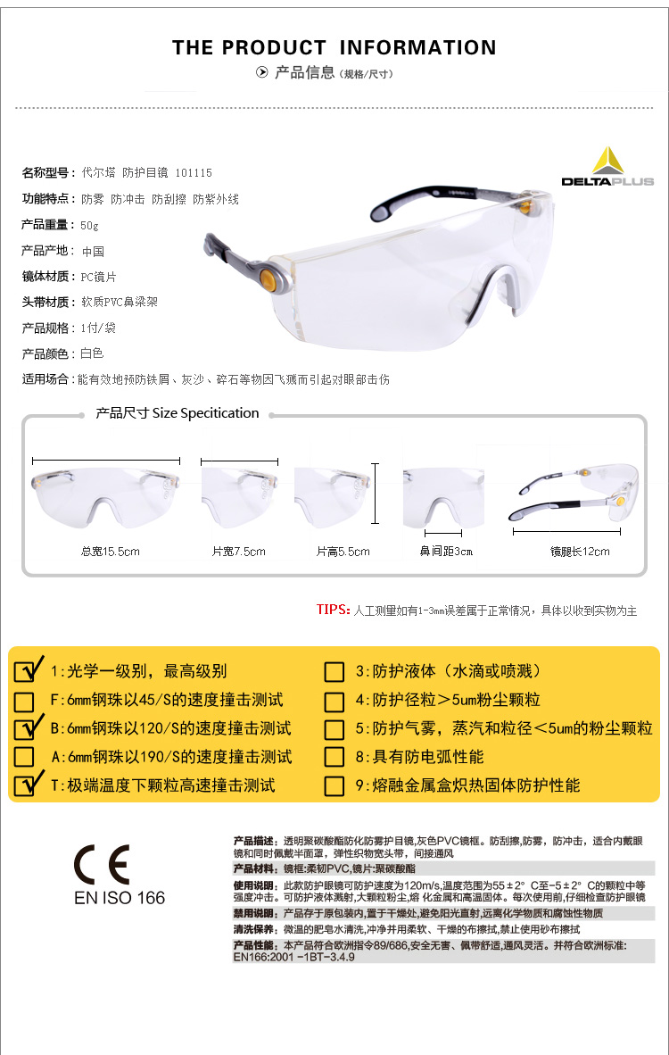 | 代尔塔101115舒适型护目镜 透明安全防护眼镜 | |||