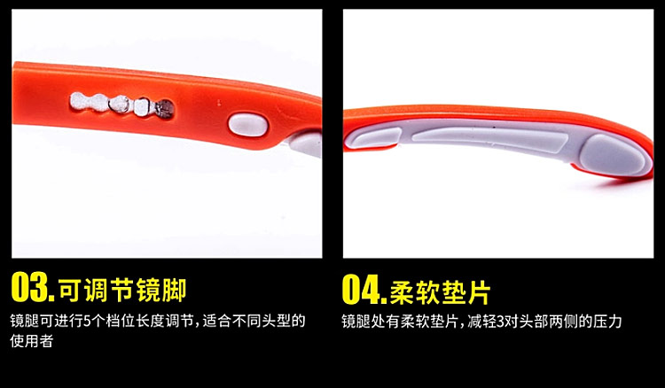 可调节镜腿,适合不同头型的使用者;