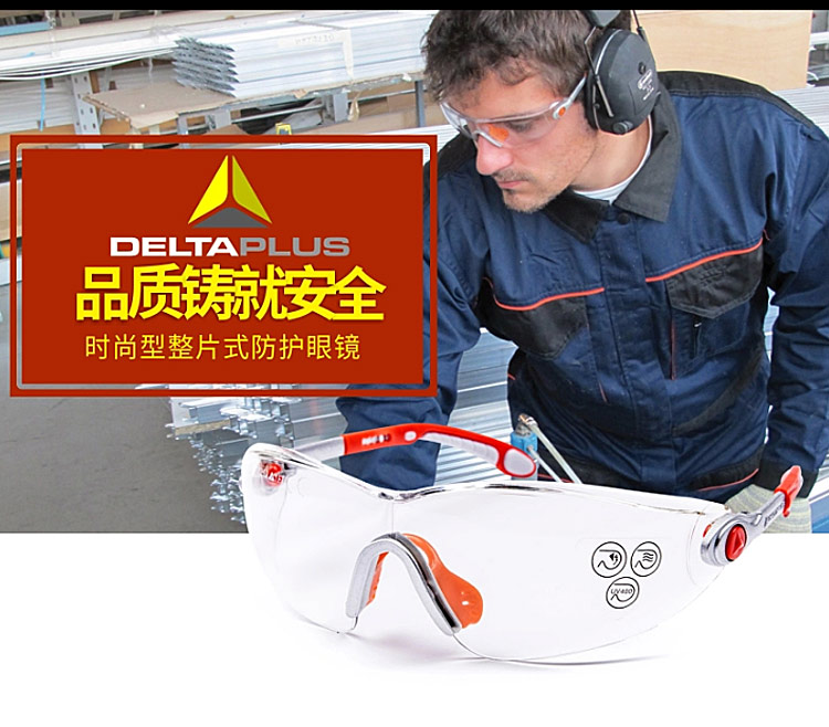 | 代尔塔101116时尚型护目镜 整片式透明安全防护眼镜 |