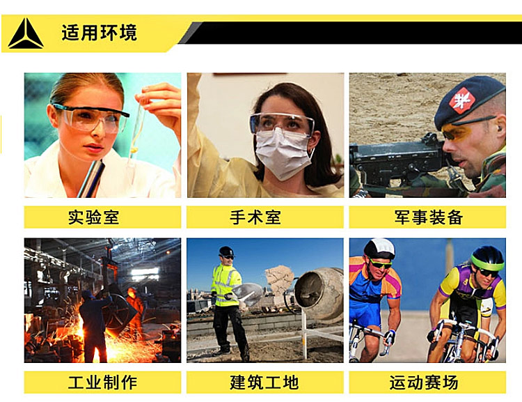 在做化学实验、骑行、跑步、打磨、切割、工业防冲击防风沙等环境下提供防护