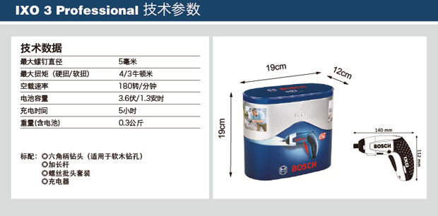 | 博世(Bosch)IXO3电动工具 3.6V锂电池充电起子机电钻 (601960281)(601960280) | |||