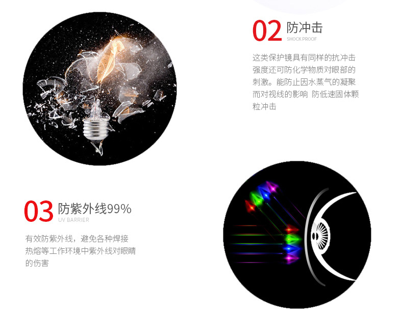 聚碳酸酯镜片,防高速粒子冲击,并阻隔99.9%紫外线