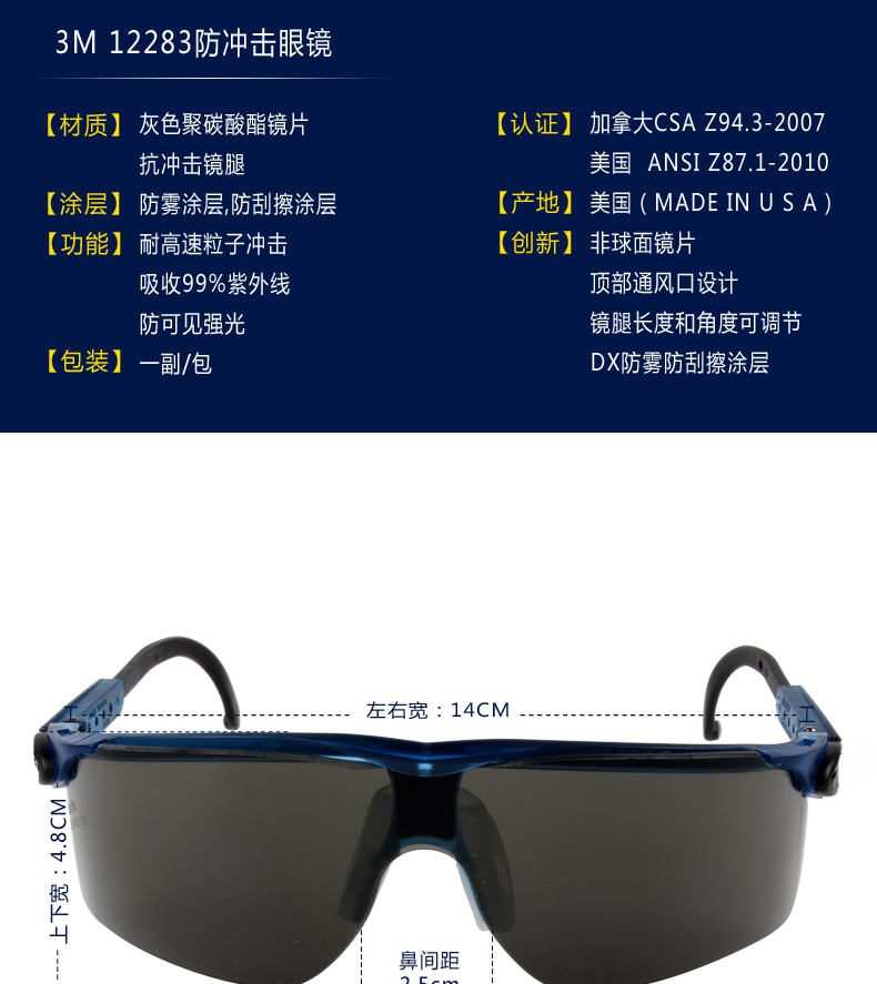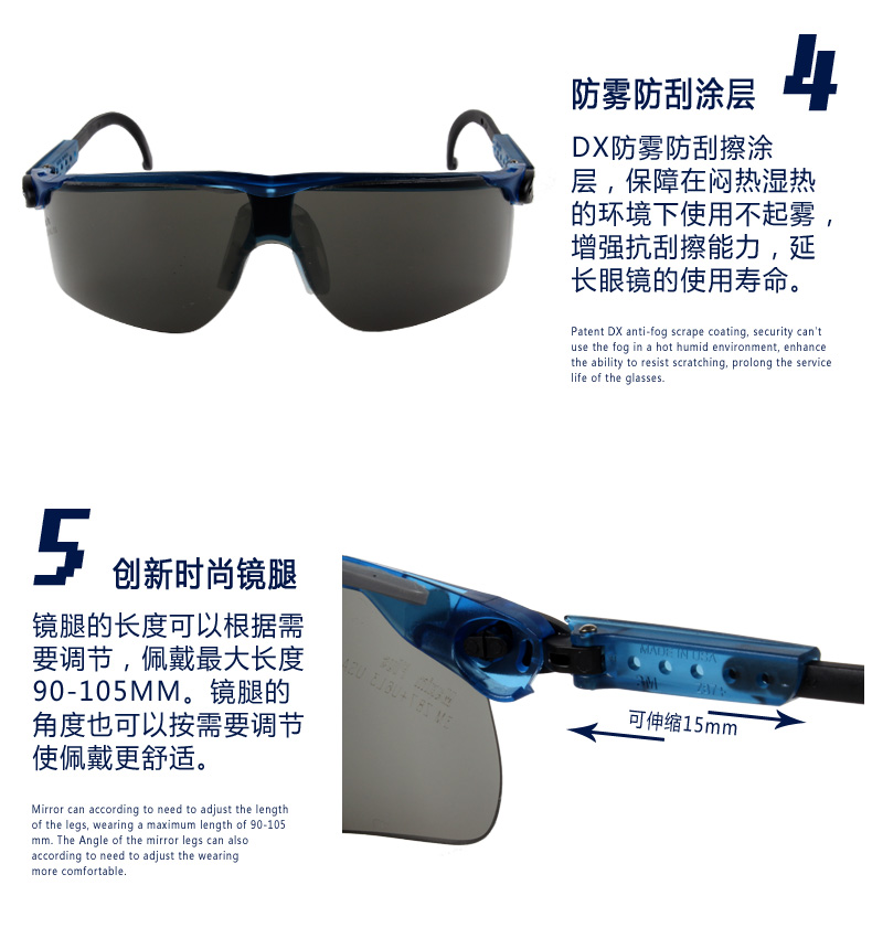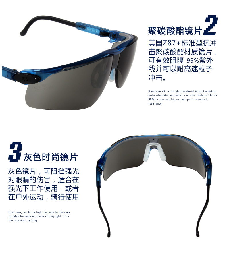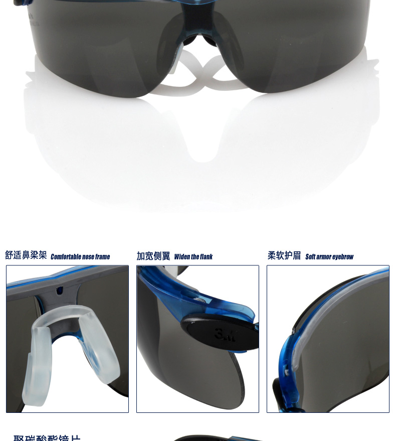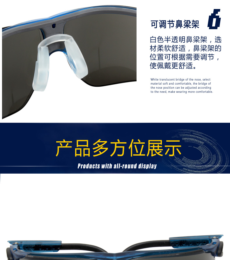 聚碳酸酯镜片 可调节镜腿 舒适鼻夹 |