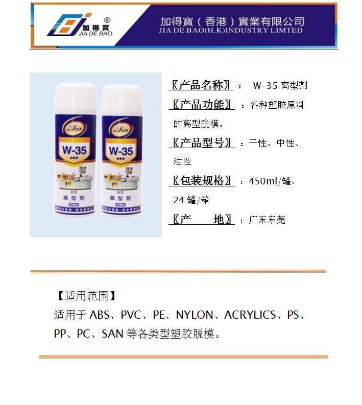 | 加得宝W-35离型剂脱模剂(环保产品)HOHS, 无卤素,邻苯二甲酸盐 | |||