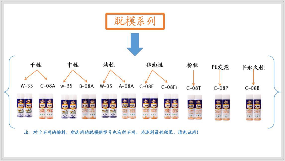 1.W-35C,干性脱模剂是选用特级进口原料,以最先进配方制成的脱模剂。