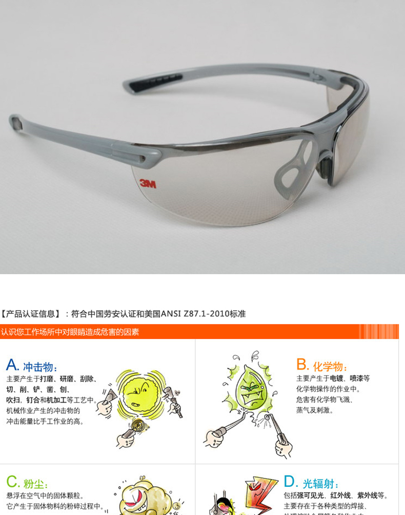 防固碎屑:用于防御金属、粉尘或砂石碎屑等对眼睛的机械损伤。
