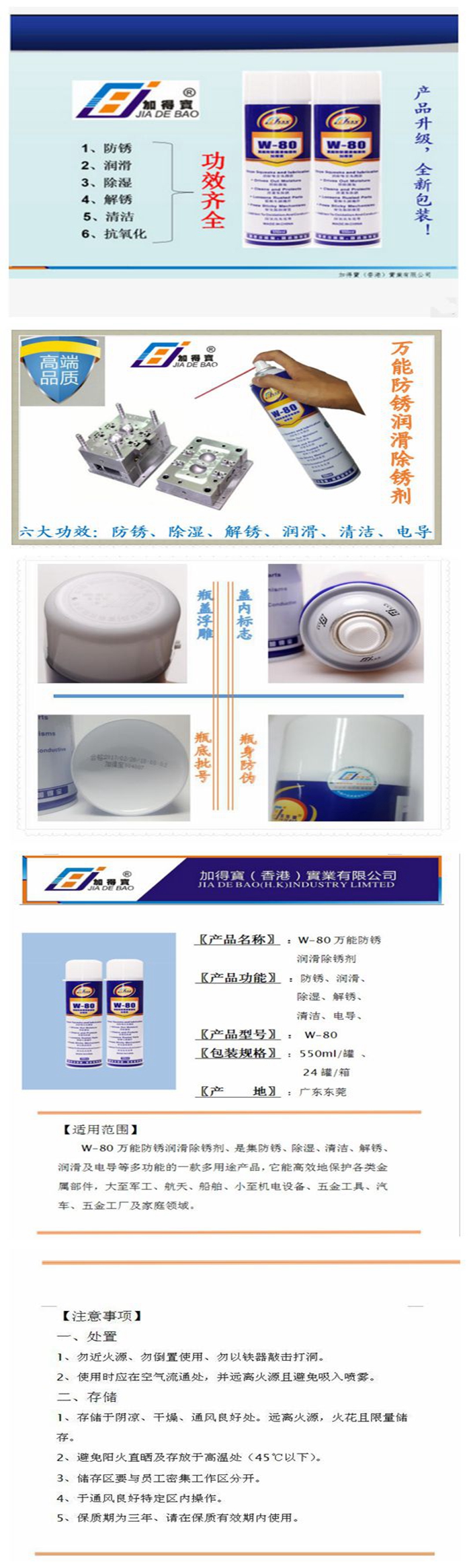 | 加得宝W-80 万能润滑防锈除锈剂 | |||