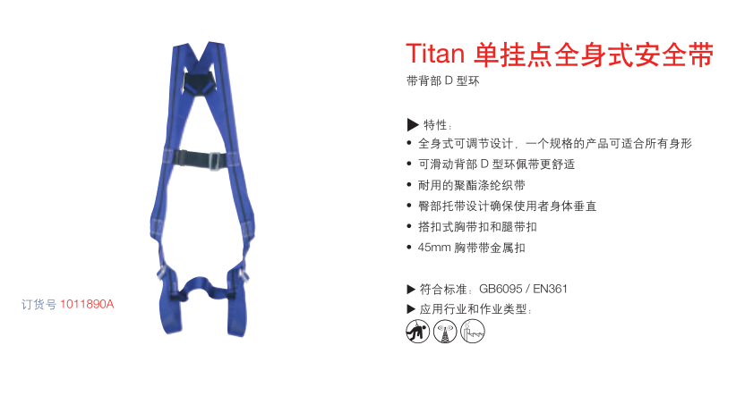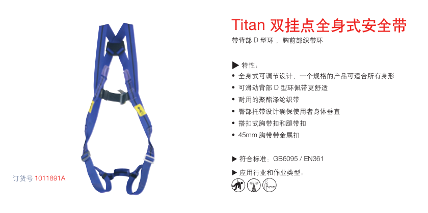 1011891A Titan 标准型全身式安全带带背部D型环, 胸前部D型环