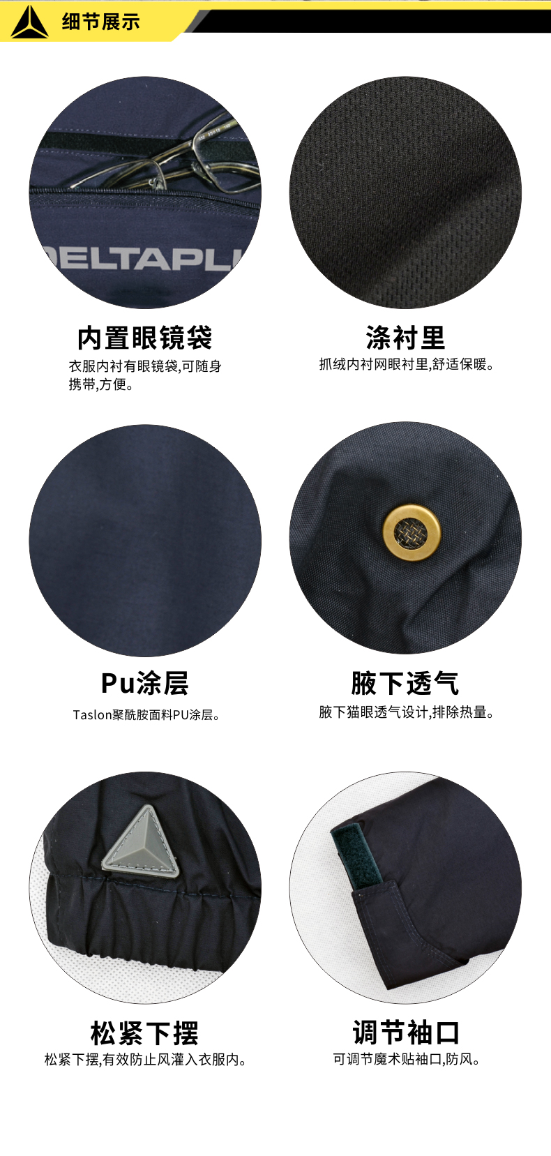 时尚款冲锋衣,Taslon聚酰胺面料,腋下猫眼透气设计,袖子部分涤填充衬里,穿着舒适轻便 |