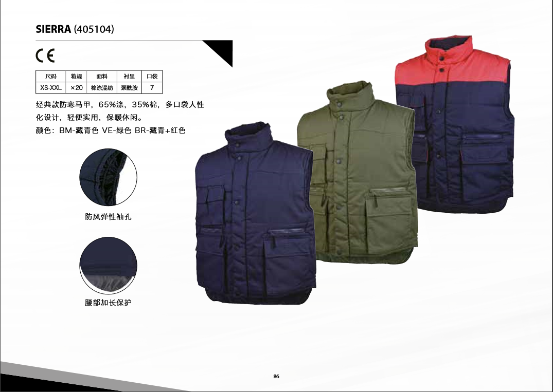 经典款防寒马甲,65%涤,35%棉,多口袋人性