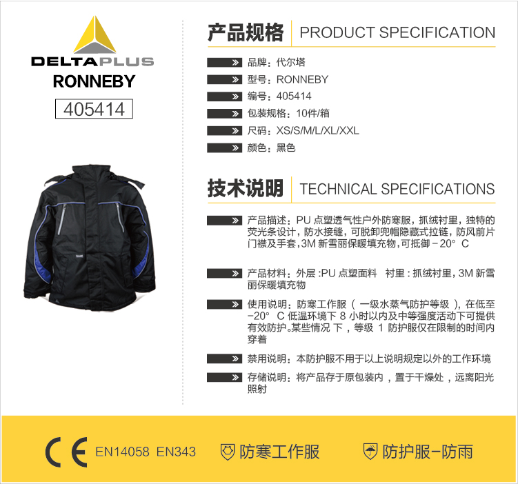 >> 代尔塔/405414/新雪丽防雨透气防寒服-20度/EXTREME COLD 极低温防寒系列