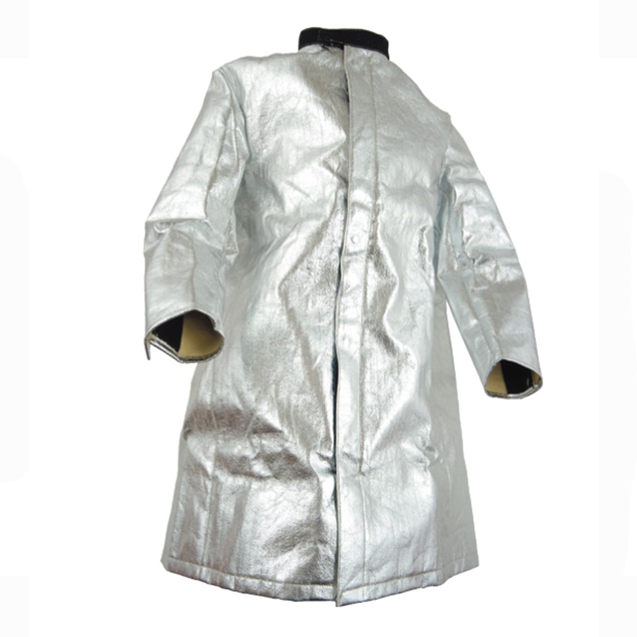 产品由镀铝芳香尼龙制成,为长风衣式设计,领口为环型设计,前襟开口配有快速搭扣和翻边。 |