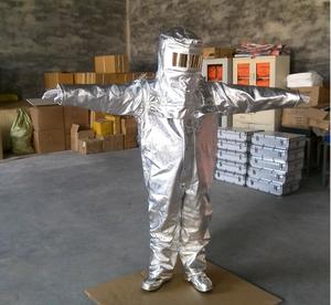 3.全身式防护服 外覆铝质保护层,服装前部位拉链带有保护翻边和按钮
