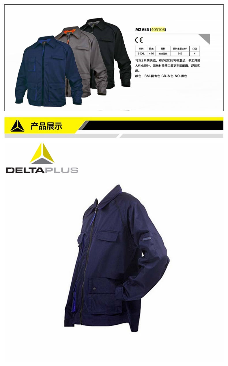 | 代尔塔405108 涤棉混纺纯色夹克工装工作服/马克2经典系列 |