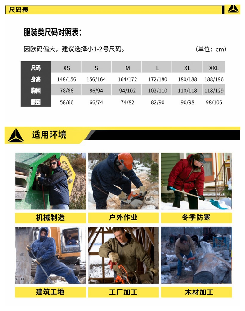 机械制造、户外作业、冬季防寒、建筑工地、工厂加工、木材加工等。