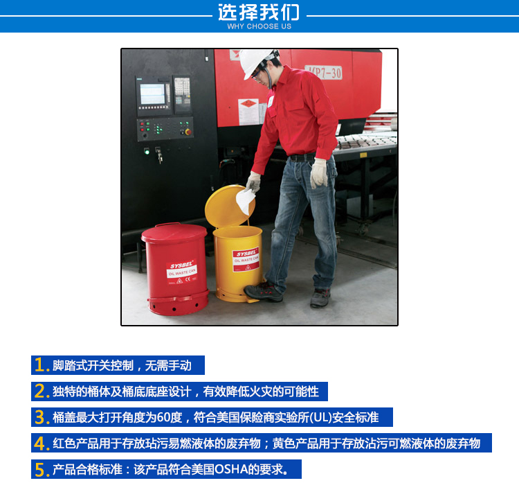 防范火灾风险,收集油品(可燃溶剂、亚麻油及其他易燃液体)所浸渍过的碎步及抹布。 |