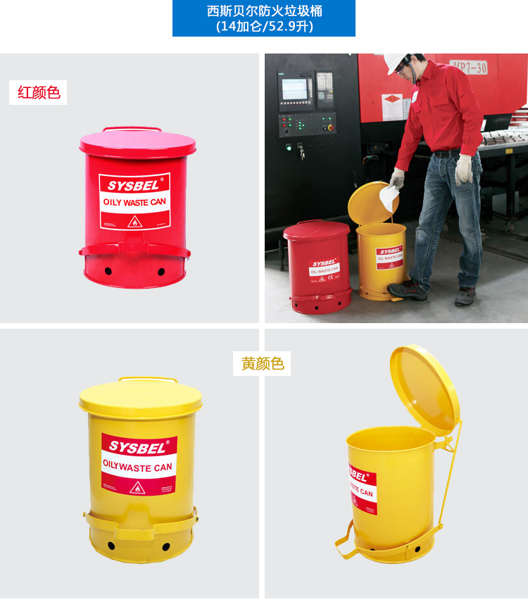 *不同型号的油渍废弃物防火桶,满足不同环境的使用要求,方便您的选择。